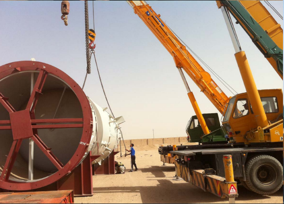 large turbines and large towers and pipeline transportation